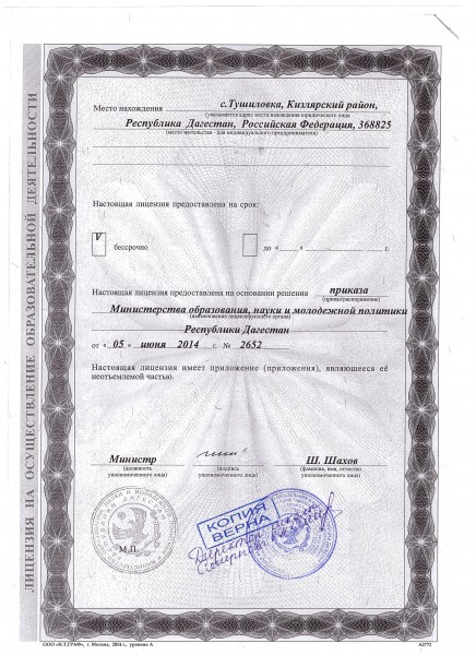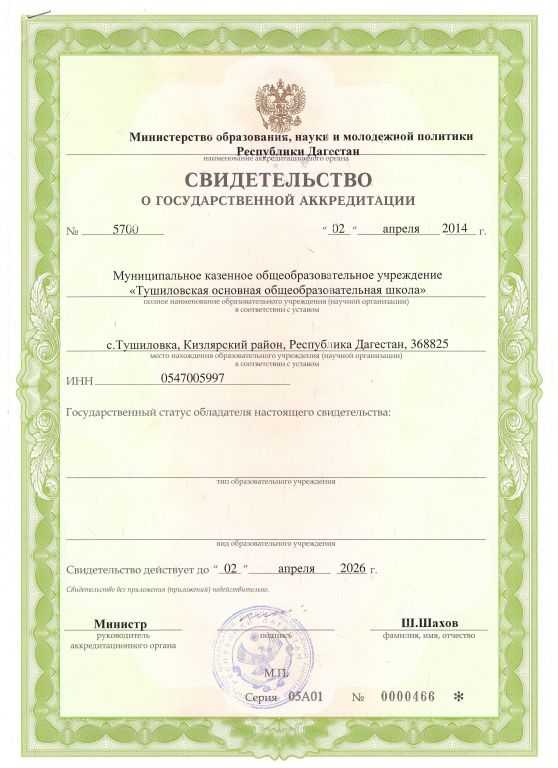 Адрес:368825, Республика Дагестан, Кизлярский район, село Тушиловка, ул. Степная, д.41