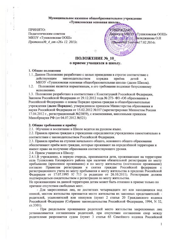 ПОЛОЖЕНИЕ ПРИЁМ В ШКОЛУ 4,8